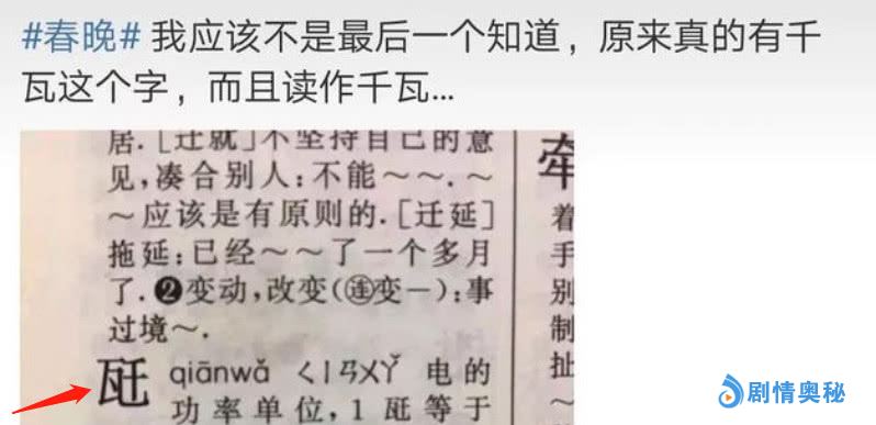 原来真的有“千瓦”这个字,而且读作“qianwa。看来现在没点文化都听不懂相声了啊。有心的人真的查了查字典,学霸本霸吧。