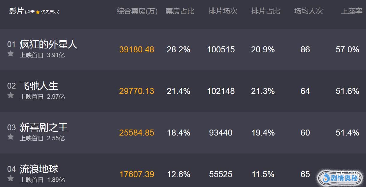 今天是大年初一春节档票房大战正式打响,今年春节被誉为是史上最强春节档,可是几部大片的票房表现却未能展现出高水准。《疯狂的外星人》被寄予厚望,它的开局票房也无悬念夺魁领跑,但口碑却两极分化严重,并且评分一路走低。《飞驰人生》倒是让人眼前一亮,票房口碑都十分出彩,一扫映前各种质疑。