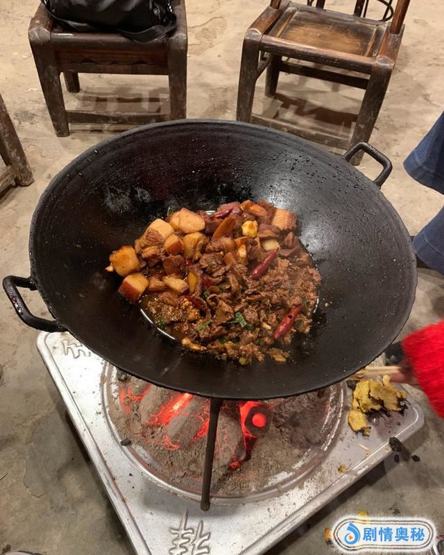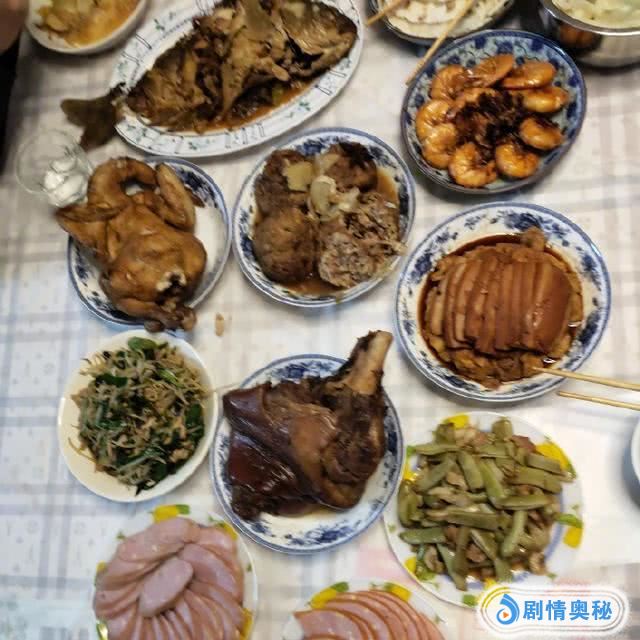 沈梦辰的年夜饭,就颇有地方特色了。大锅炖的大锅菜,看上去特别过瘾。而且也特别有乡间气息。