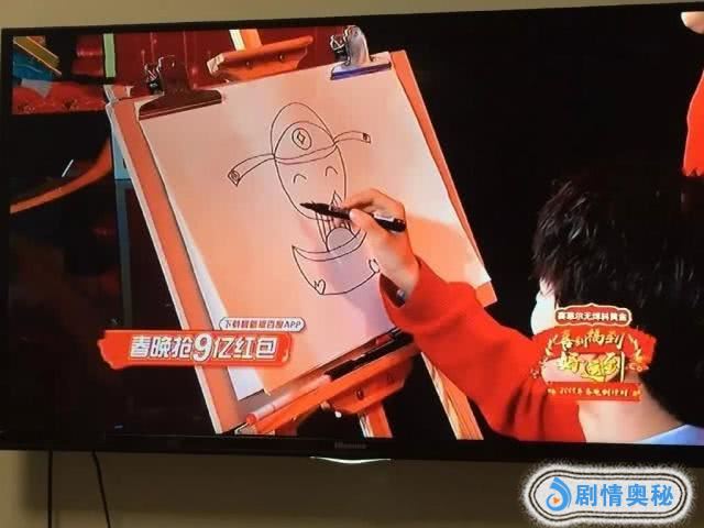 在采访直播中,还有三人画画的一个小场景。主持人让他们画财神爷。于是他们三个,把财神爷画成了以下的模样:有点可爱有点萌。画的比较简略,但是这画功,其实还是不错的。