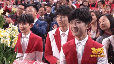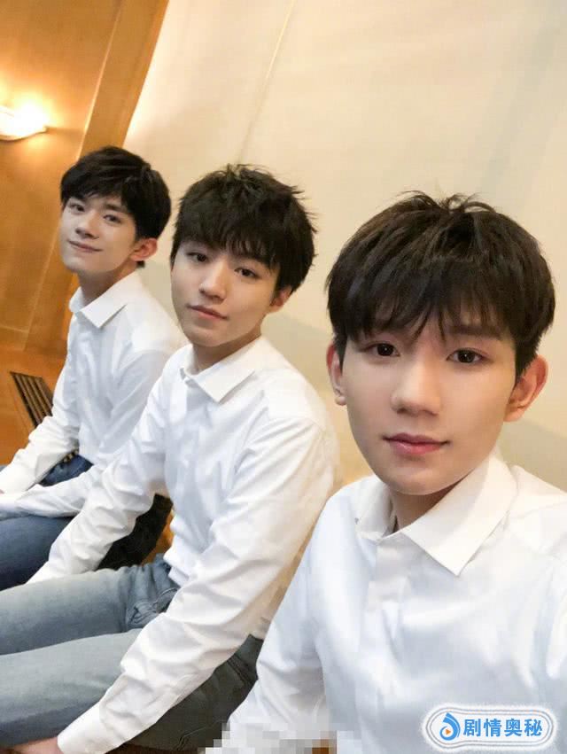 节目还未开始时,有媒体采访了他们。出现在镜头中的三小只格外乖。穿着白衬衫排排坐,真是像极了高中生。好像还没有长大一样。其实都已经是大男孩子了。这时的他们还没有换装。大概也是为了给将要表演的节目保密吧。