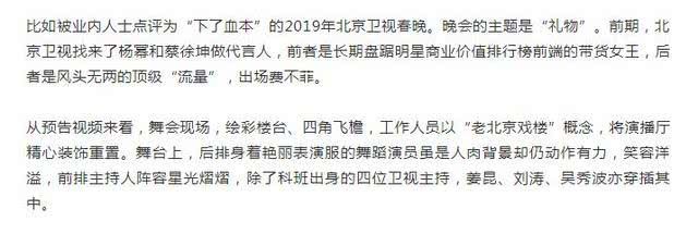 结果事实证明,吃瓜群众都猜错了,不光吴秀波的部分,北京卫视直接把主持人的串词全剪没了,在没有串词的情况下,节目一个接一个,节奏飞快,直接干脆。