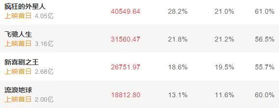 经过一天激烈的厮杀,几部华语大片终于决出了首日胜负。《疯狂的外星人》以4.05亿的首日票房力压群雄夺冠,场均高达88人,冠绝全场;吴京《流浪地球》豆瓣8.4分,堪称春节档口碑第一大片。