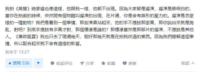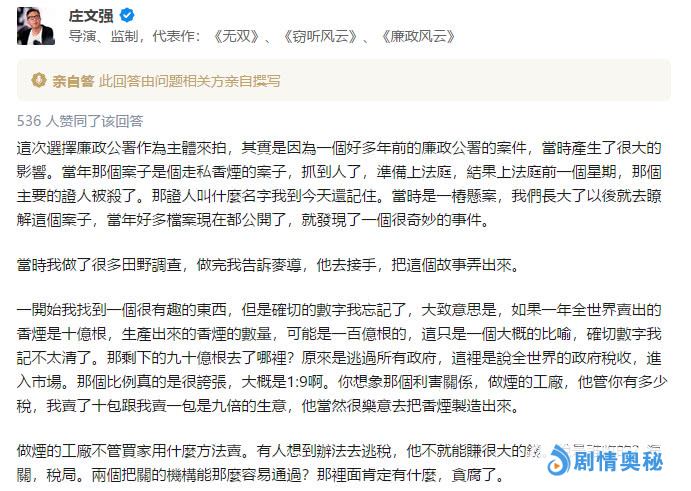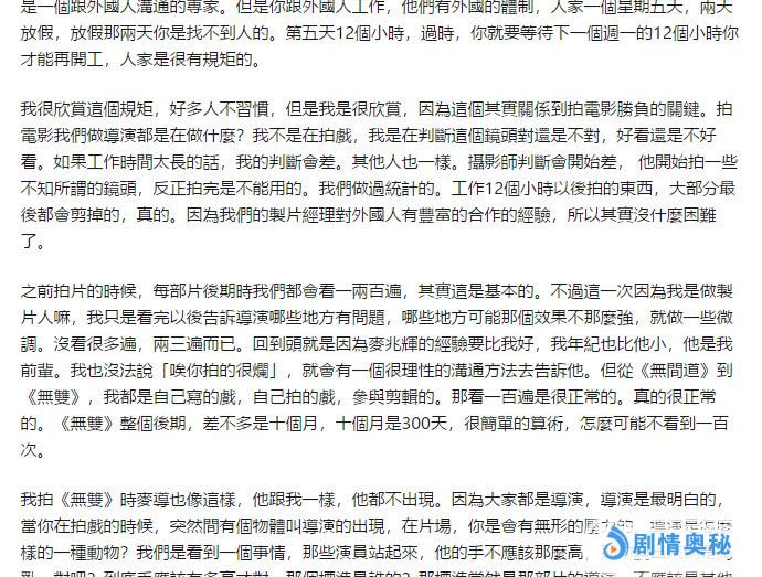 监制庄文强跟在麦兆辉后面,也发了一篇长文,但气氛完全不对,言辞特别犀利。他的这篇长文主要说了以下几点: