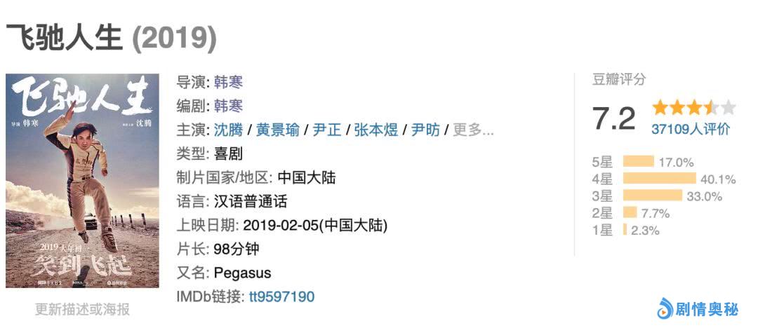 这次,韩寒直接把最爱的赛车搬上大银幕。虽然拍摄一部赛车电影难度大,但却是他很早就有的想法,而豆瓣口碑7.2,也正说明了电影的成功。