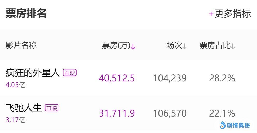 《疯狂的外星人》上映后遥遥领先一众新片,拿下春节档首日冠军,首日票房破4亿,票房占比28.2%,《飞驰人生》勇夺亚军,首日票房高达3.17亿,票房占比22.1%