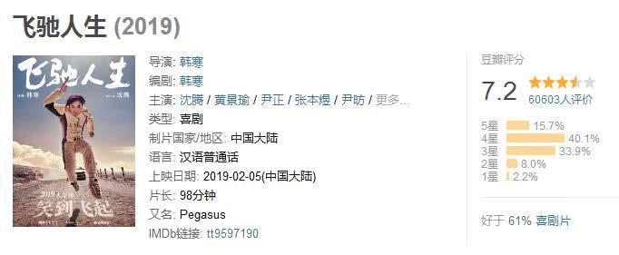 票房第二名的《飞驰人生》,昨天评分是7.3分,今天是7.2分,下降了1分。打分人数也是从2万多上升到6万多。