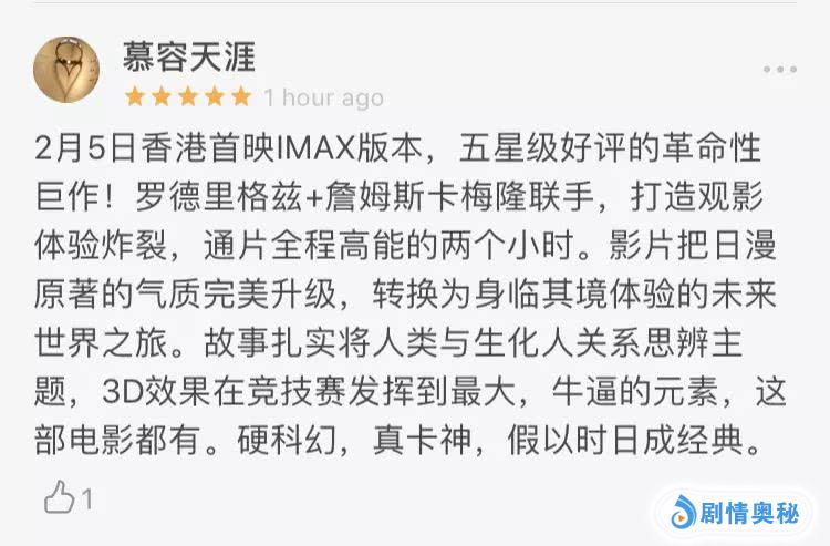 真实场景和捕捉特效无缝对接带来的超刺激观感,得到了众多影迷的夸赞,大家纷纷安利到:“绝对值得走进IMAX一刷再刷!”、“震撼极了,唯一的缺点是迫不及待让我想看第二部!”更有影迷称:“光是打斗场面就已经值回票价了,二刷必须安排!”