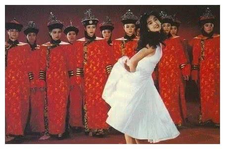 瞿颖表示,当时这组照片以她们群演的红色与王祖贤的白色连衣裙形成鲜明对比,衬托王祖贤的灵动仙气。的确,从照片中看来,后面的一群红衣宫女成了无人注意的背景板,只有王祖贤是画面的中心和焦点。