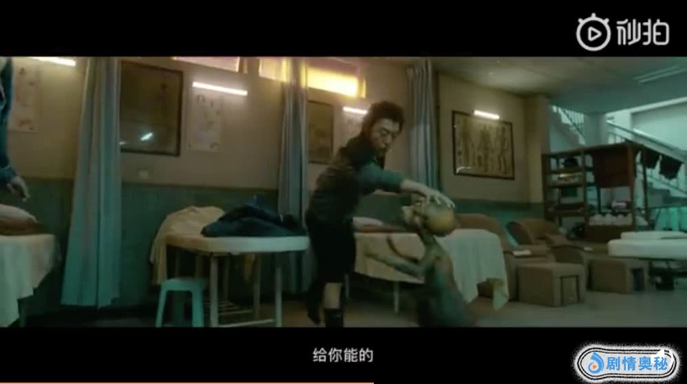 然后风水轮流转,画面一转,外星人当家做主人了,喜提黄渤沈腾殷勤陪酒,轮到渤哥当场表演助兴节目“金枪锁喉”了,场面非常搞笑。