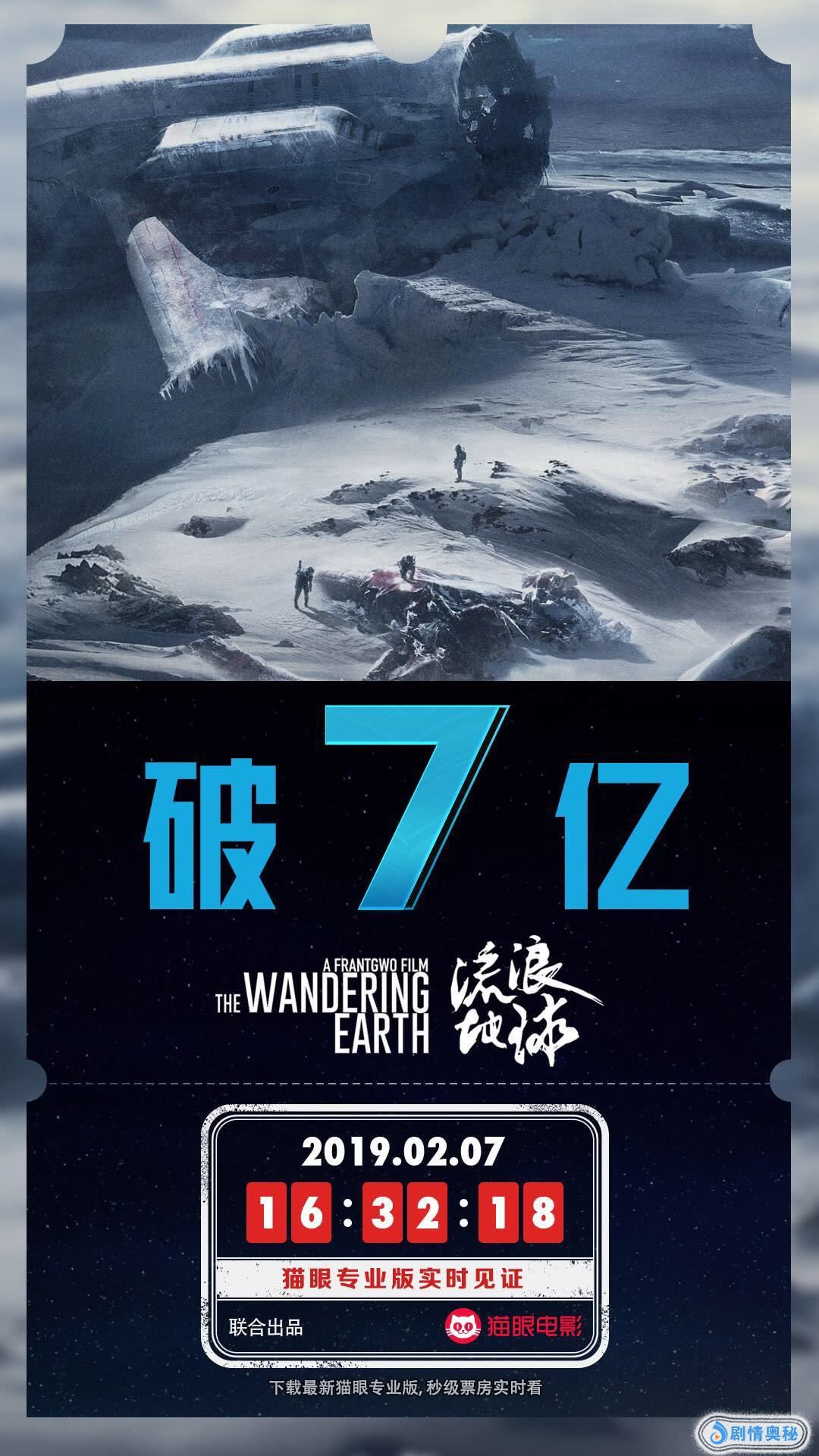 中国第一部硬科幻大片《流浪地球》正在全国热映,这部电影精彩的特效和严密的故事收获了众多好评和超高票房,目前,根据猫眼专业版数据显示,截止2月7日16点32分,《流浪地球》全国总票房已经突破7亿人民币。