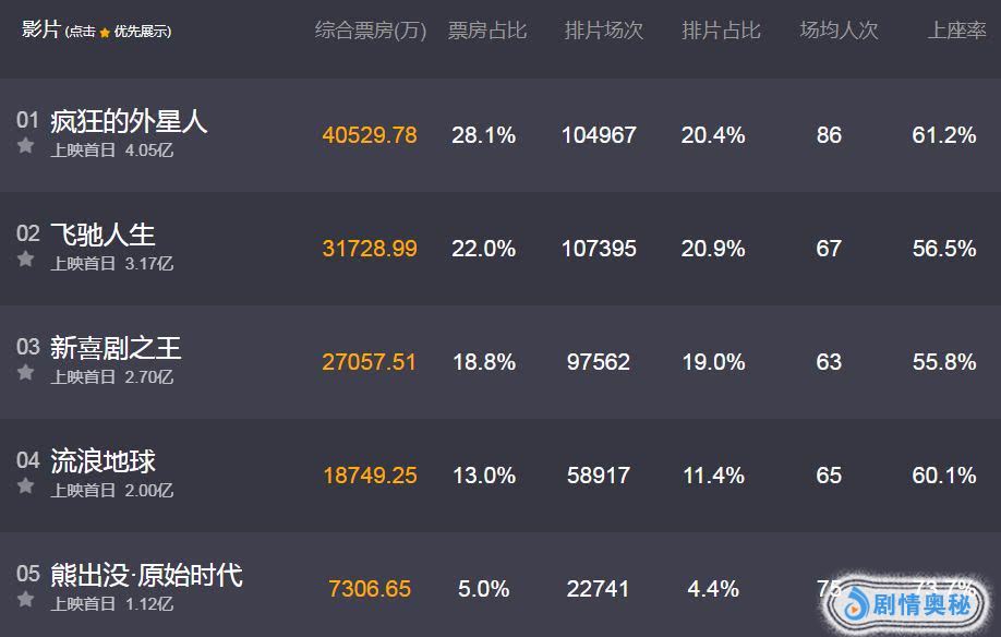 今日票房榜