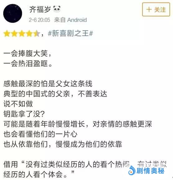 在电影《新喜剧之王》中,这位霸道又不失温柔、严苛又很温暖、固执又善解人意的父亲看起来是一位“非典型慈父”。