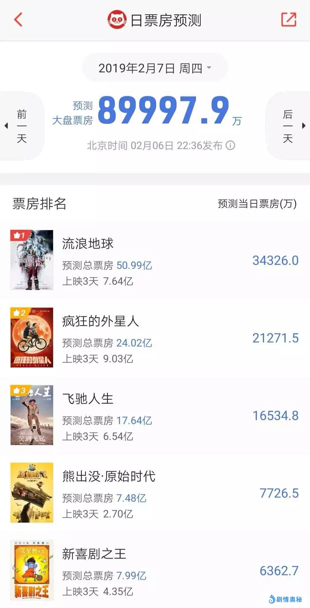 所以,显然的是,把春节档票房不如意的症结归到票价高上是不科学的,如果票价成为掣肘,那么我们就无法解释《流浪地球》在初二开始逆袭,初三登顶日票房冠军的现象了,毕竟他的票房实现了增长,同时价格也一直没有明显的松动,且比其他影片本身就贵五元。