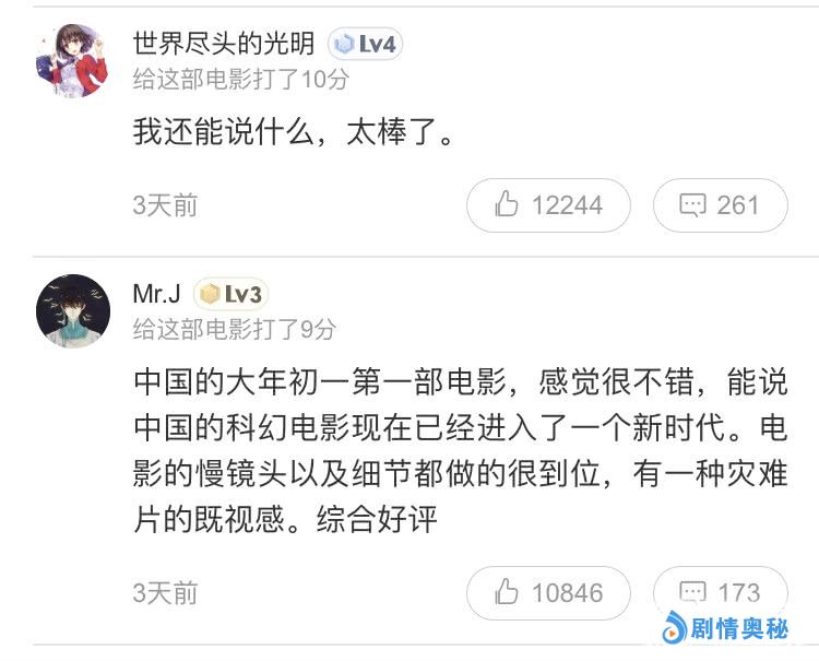 猫眼评分高达9.3分,86%的购票用户给出了五星好评,许多观众评论《流浪地球》用了“画面劲爆”、“创意不错”和“剧本不错”等词汇,还有人说:“可以说中国的科幻电影已经进入了新时代。”