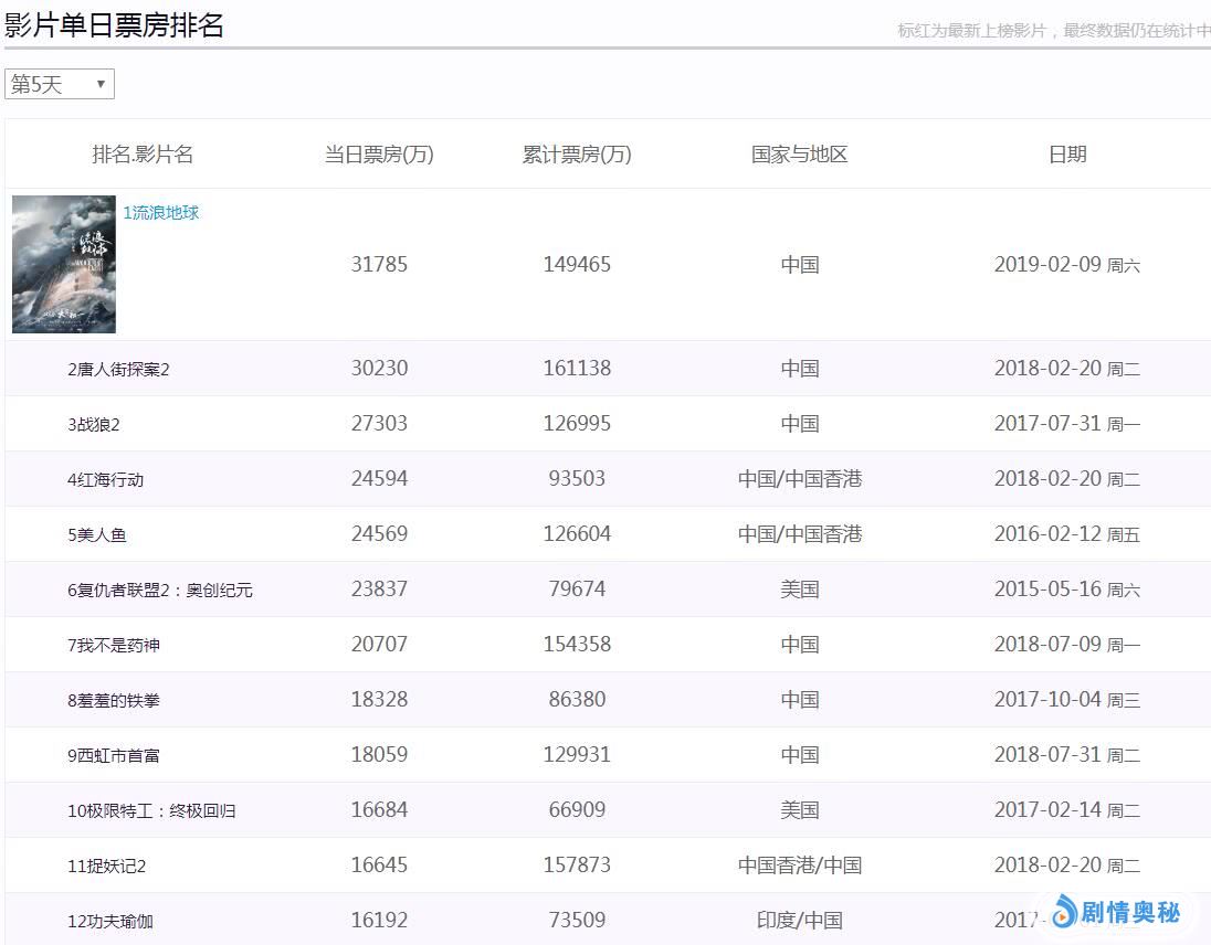 《流浪地球》票房这么炸裂,上映5天了单日票房还继续走高丝毫没有回落的迹象,这个后劲牛魔王都拉不回来,票房破《战狼2》纪录有戏十拿九稳了。2月份没有像样的大片拦路,也就是2月22日《阿丽塔:战斗天使》有点竞争力,但是以这两年好莱坞大片的票房表现,卡梅隆监制的这部新片卖座预计有限,因为该片在海外其他市场开画票房表现一般。