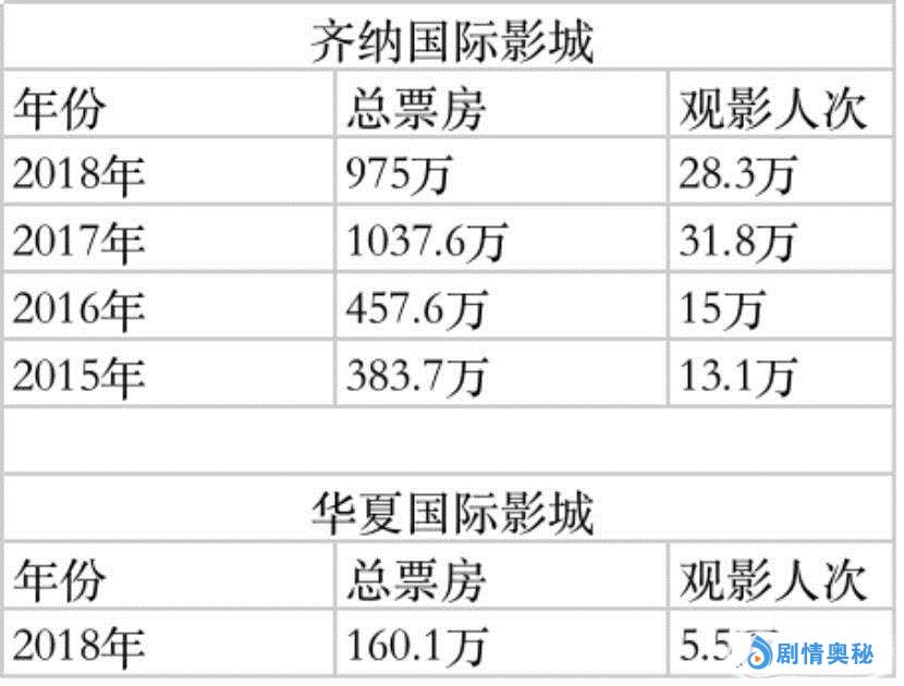 2018年,齐纳国际影城的总票房为975万,相比于全国排名第一的北京耀莱成龙国际影城的7653.6万,仅占不到13%的比重,如果与全年600亿相对比,更是九牛一毛了。从观影人次来看,去年齐纳国际影城也只有28.3万人次,北京耀莱成龙国际影城则有其6倍多。如此,华夏国际影城160万的总票房和5.5万的总人次更是不值一提了。