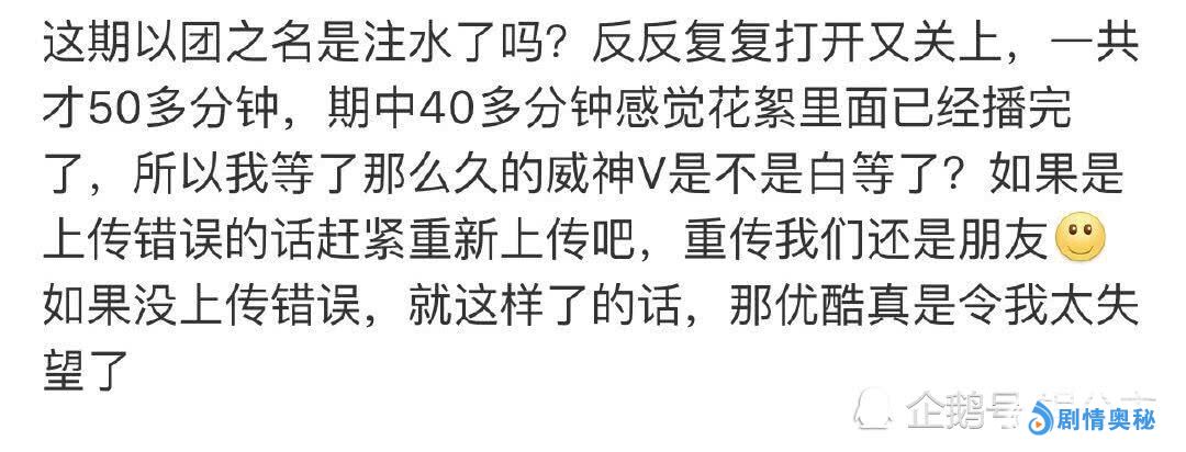 除了拥有像《青春有你》这个强有力的对手之外,《以团之名》自己的剪辑也是真不给力呀!这一期仅有50分钟时长也就算了,其中有差不多40多分钟都是播过的!这可气坏了观众,直接在节目弹幕中就开始不留情面的吐槽了!