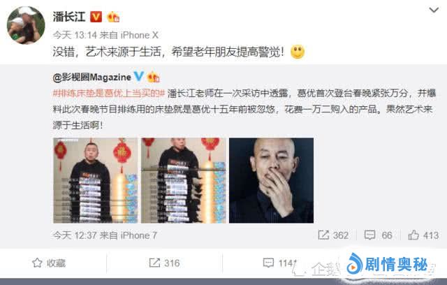 当时在具体节目曝光以后,潘某人就首先在网上发表了声明,说自己本次出演的小品全部内容完全是从生活事实中提取的,所以还希望老年人都能多加注意。而且在某一次采访中,他还说出了一个“秘密”,就是葛大爷这次登台其实非常紧张胆怯,一直抖个不停。而且节目中的故事也都是根据葛优的真实经历改编的,当年他就被相熟的朋友给骗了,最后白白花了一万二购入了一个日本床垫,本来都打算扔了,没想到这次彩排还排上了很大用场,也算是“意外之喜”吧。