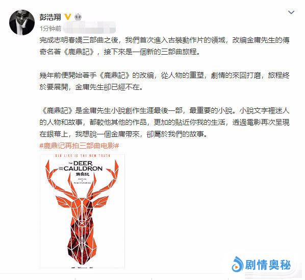 新金牌娱乐观察家知道,现在翻拍金庸压力很大,观众还没看就会说:饶了我们吧,求中国出一些好编剧别翻拍了。但是你们别忘了,彭浩翔可是鬼才啊,他妙笔生花,说不定可以给金庸的影视剧注入新的活力呢!
