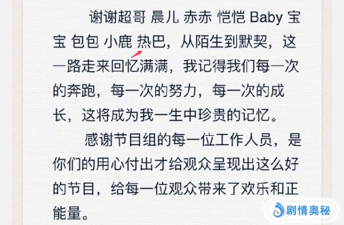 这一次回应退出原因的成员中,唯独王祖蓝提到了迪丽热巴,大家应该都知道李亚男已经生下了小宝贝,父亲想要多陪伴孩子也是很正常的事情,王祖蓝在长文中提到了所有参加节目的嘉宾名字,其中还有热巴,虽然热巴参加的时间并不长,但她毫无疑问也成为了这个家庭的一份子,而王祖蓝在告别节目的同时还能提到热巴真的是很让人暖心了!