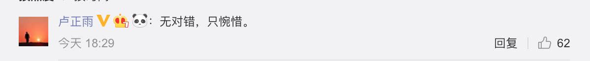 之后,卢正雨还在自己的微博下留了言,“无对错,只惋惜”。网友们也纷纷在评论中留言力挺,表示自己的心疼。