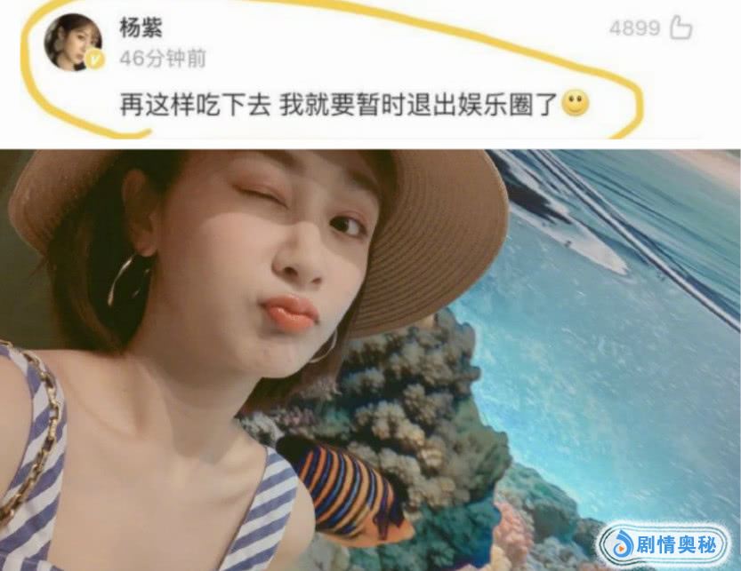 近日杨紫在微博中称:再这样吃下去,我就要暂时退出娱乐圈了