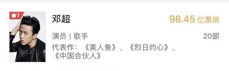 雄霸男女主演榜首的,分别是票房98.45亿的邓超,和票房94.71亿的白百何。