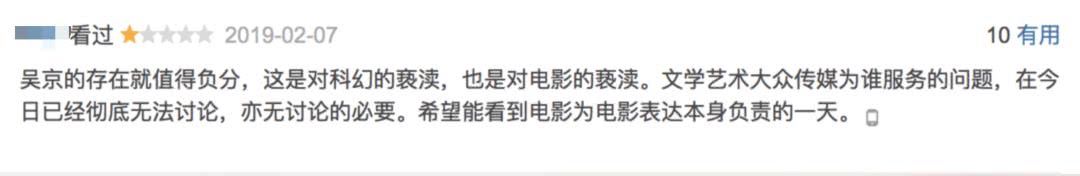 豆瓣上为吴京直接否定电影差评的,大有人在