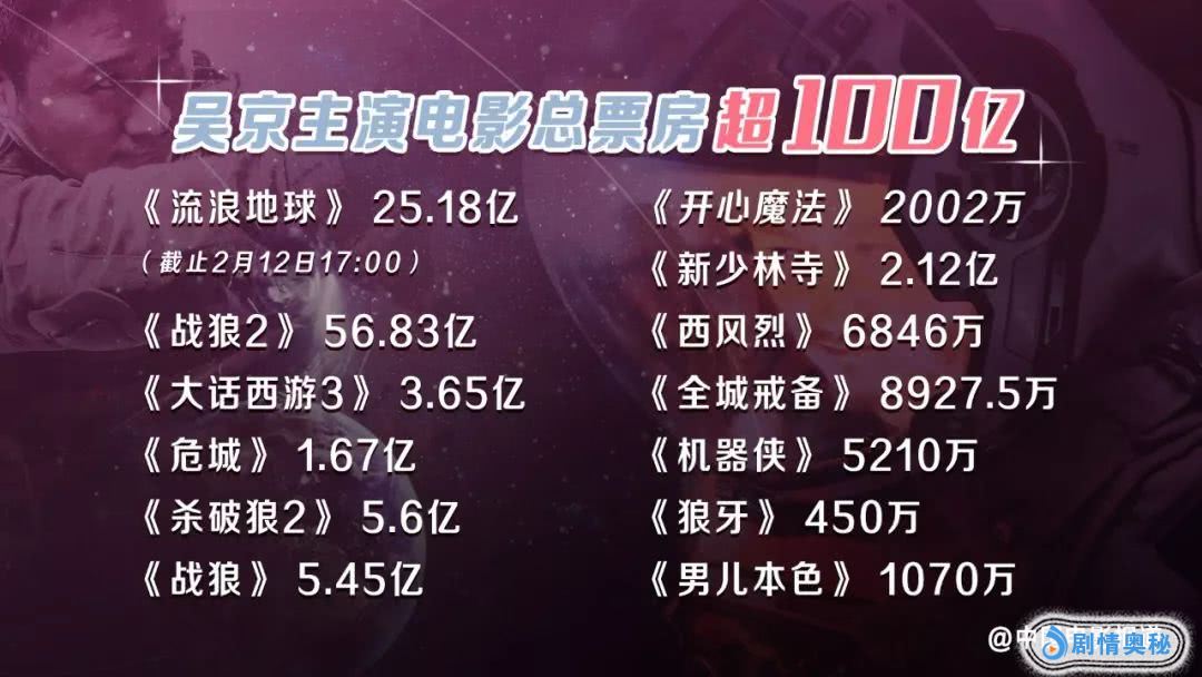 结果我们知道,《流浪地球》再次将吴京推向了一个前所未有的高度。截至发稿,《流浪地球》票房已达25.2亿,成功反超23.9亿的《复仇者联盟3》,杀进中国影史票房前十。