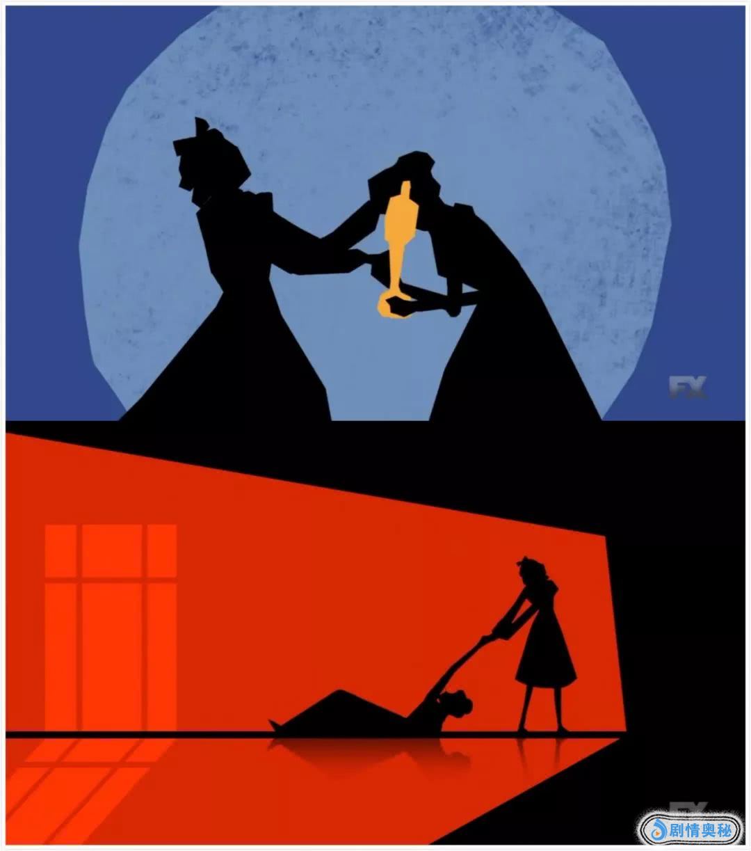 又比如美剧《宿敌:贝蒂和琼》,该剧讲述的是两位昔日红极一时的好莱坞女明星,在年过半百、事业下滑时期,共演了一部名叫《兰闺惊梦》的惊悚电影,戏里戏外一幕幕争斗的故事。片头以极简动画的形式呈现故事的重要剧情,比如二人争夺奥斯卡小金人,电影中贝蒂饰演的角色折磨坐在轮椅上的琼的戏中戏等。片头高度浓缩了电视剧的主干,以一种精巧的方式迅速让观众进入剧情,风格化十分明显。