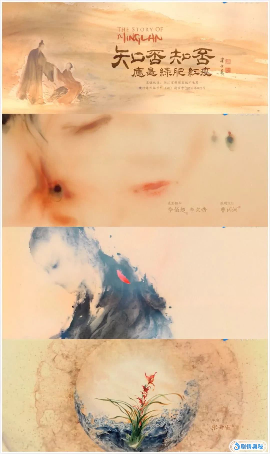 而最近即将收官的《知否》,则用美轮美奂的中国风的水墨画,惊艳了观众,成为热议话题。片头除了男女主肖像画,还数次出现兰花的意向,也指代了少女明兰的成长。整体柔美的风格,形象化的展现了《知否》闺阁少女的成长励志故事。充满浓浓的古典韵味,也让人不由得联想到李清照优美的宋词和那个时代独有的风情。