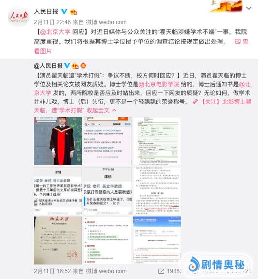 就此翟天临“学霸人设”彻底崩塌,其品德也遭到质疑,人民日报对此事也发表了评论,称“做学术并非儿戏,博士(后)头衔更不是一个轻飘飘的荣誉称号”,并点名北京电影学院及北京大学发表回应。对此北京大学回应称已高度重视,并将根据其博士学位授予单位的调查结论按规定做出处理。