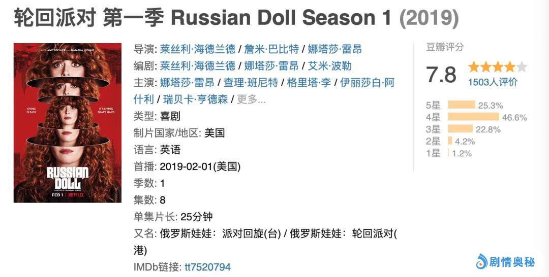 这部剧的英文原名是Russian Doll,即俄罗斯套娃,当我们拿到这种玩具时,本能的反应就是一层一层地打开它,小心地扭动空心的外壳,一直重复,直到我们看见里面最小的实心木娃娃,这个玩具很适合做隐喻,有条不紊地层层剥离,与本剧的主题核心再契合不过。