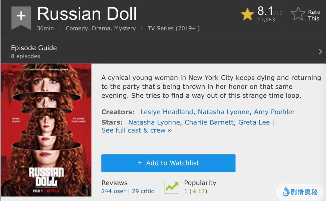 这首先当然得归功于本剧的创作者们,分别是Natasha Lyonne,Amy Poehler和 Leslye Headland。其中Lyonne也出演了本剧的女主角Nadia Vulvokov。