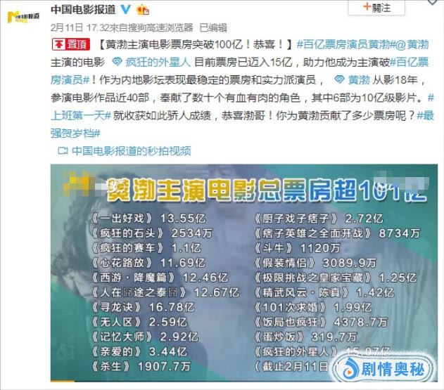 就在春节档电影热期还没有过去的时候,中国的首位破百亿演员就悄悄的诞生了,然而并不是时下最热的吴京,也不是两部电影春节档的沈腾,而是另外一个演员,而这位演员也被很多的中国观众给予了厚望,究竟是谁呢?下面就让我们一起来看一下吧。