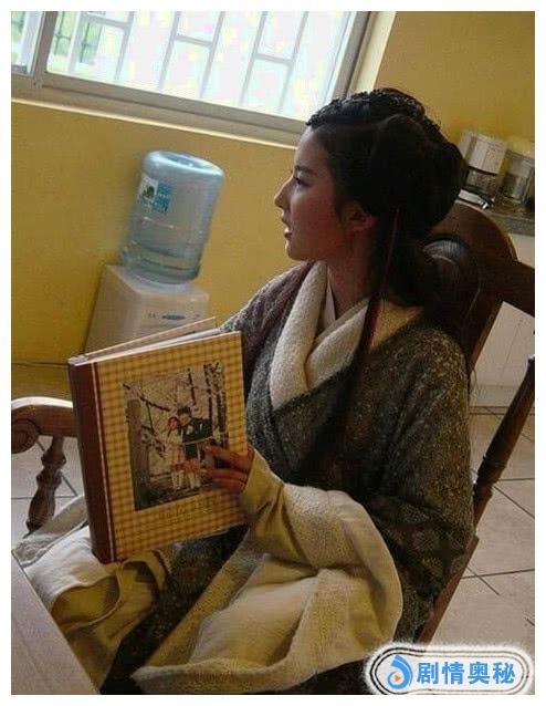 拍戏中场休息的时候,穿着戏服坐在那里,虽然只拍了个侧面,看着却非常舒适,挺翘的鼻梁,让她整张脸看起来很有立体感,张开的小嘴,好像正在说着什么,还有那握着相册的纤纤手指,古典美女大概就是她这个样子的吧。