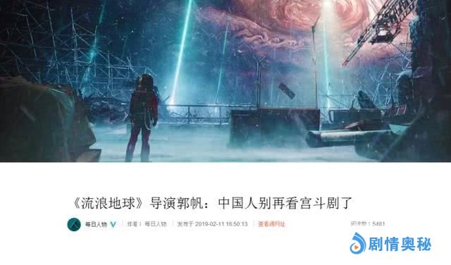 而这篇访问的标题,就赫然写着“《流浪地球》导演郭帆:中国人别再看宫斗剧了”这一行颇具煽动性的字句。