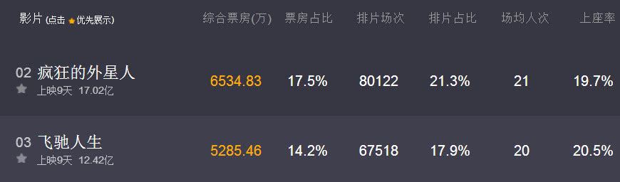 《疯狂的外星人》一开始是被认为有望夺得春节档票房冠军的,毕竟有着黄渤和沈腾主演。电影上映之前也是有着过亿的预售票房,上映之后虽然因为口碑的缘故表现的不是那么给力,但是如今上映9天时间总票房也已经正式破17亿,相信最终破20亿票房完全没有问题。