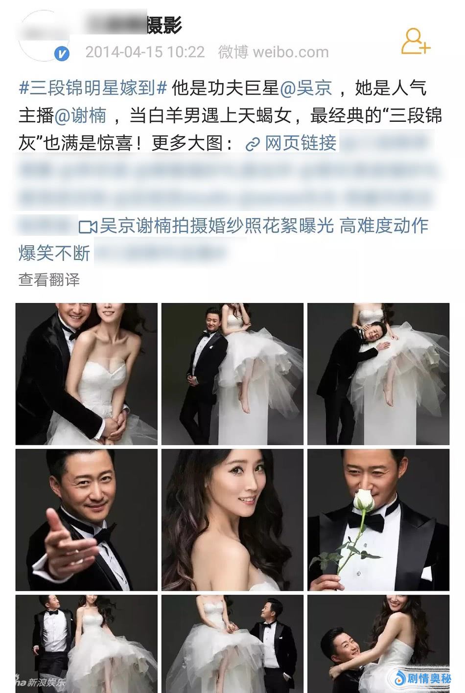 可是谁能想到,这张照片竟是取材自他的婚纱照,是之前吴京和人气主持人谢楠成婚时所拍摄得系列照片其中之一。同一组照片中,或是谢楠与吴京甜蜜相依,或是吴京独自手持白玫瑰眼带笑意。