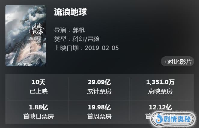《流浪地球》自击败《疯狂的外星人》、《飞驰人生》等多部影片后,已蝉联单日票房冠军高达一周时间,截止2019年2月14日11时,总票房顺利突破29亿,票房表现相当亮眼!