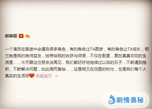 而且明兰教给赵丽颖的不仅仅是在剧里面,而是真真切切的体现在了生活里面。赵丽颖说:要和这位朋友说再见了,希望我们两个都能继续过好自己的日子,不断遇到挫折,不断解决问题,周而复始。赵丽颖的真切告别,内容扎心,应该是发自内心的一种感悟,而网友看到了,也纷纷表示:舍不得你。