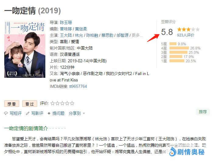 2015年11月,同样由导演陈玉珊执导的爱情电影《我的少女时代》问世后,一度引发了众多观众和影迷的共鸣,而且该片更是以豆瓣7.8分,累计总票房3.5亿的完美成绩为观众和影迷递交了一份满意答卷。演员王大陆和宋芸桦这对超强cp也一度得到认可和好评。然而,时隔4年后,导演陈玉珊再一次携手新作品《一吻定情》来袭,除了在口碑上扑街,影片上映首日票房更是低迷。截止发文时间,影片上映首日,豆瓣给予5.8分的不合格评价,票房上也仅有可怜的四千多万。