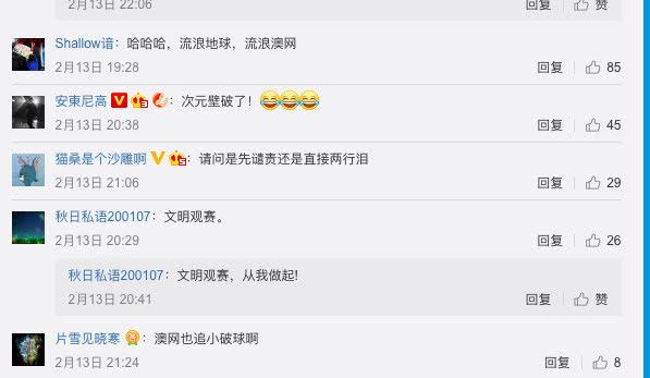 网友们被这条微博逗得不行,有人表示:“原来澳网也看小破球啊!”还有人戏称澳网为“流浪澳网”。看来《流浪地球》作为中国首部硬科幻电影,真是非常国际化了!