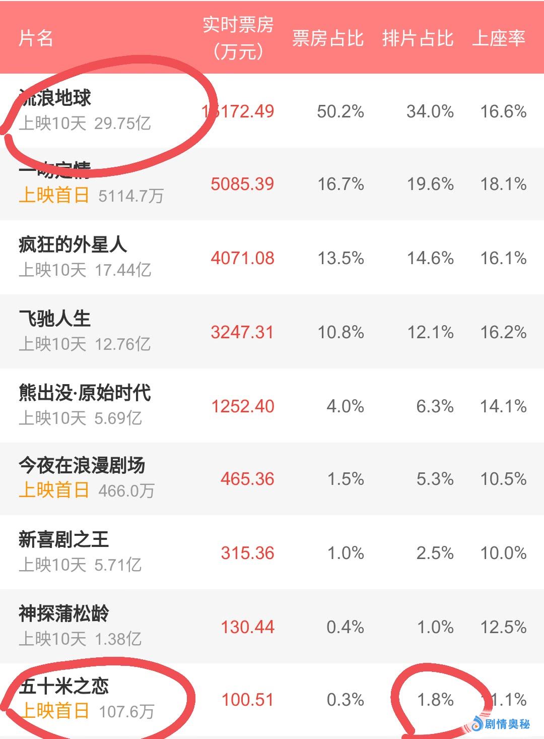 令人尴尬的是,《五十米之恋》刚上映就连遭重击,排片受到严重挤压,截至发稿时,仅剩1.8%,票房更是刚破100万。