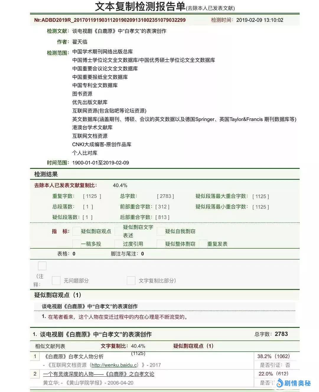 1、论文查重率高达40.44%。