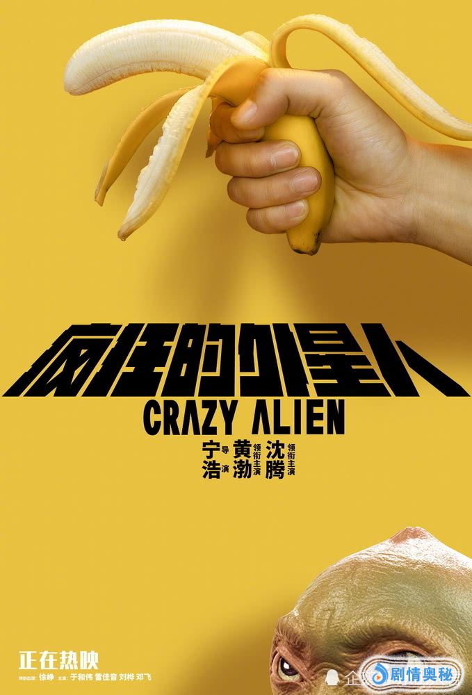 这个海报,除了“疯狂的外星人”几个大字外,上面是一根剥开一半的香蕉,被握在手上。下面是一只虎视眈眈的猴子。