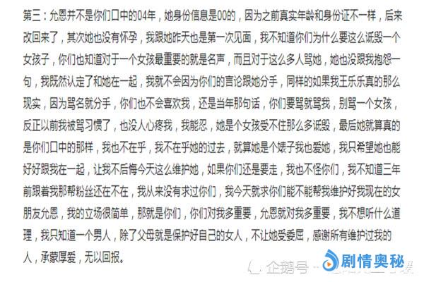 当然了王乐乐除了在文章当中维护允恩外,他还主动的晒出了允恩的身份证照,因为两人自从确定恋情之后,很多人都觉得允恩的年龄是15岁,王乐乐不应该跟她谈恋爱。然而我们王乐乐在晒出的身份证上可以看出允恩的真实出生时间是在2000年,所以这也打破了允恩15岁的谣言。当然了在这张身份证上允恩的年龄是一个亮点,还有一个亮点就是王乐乐的一个下意识举动。从照片当中我们可以发现,王乐乐虽然是在辟谣,但是他也在为允恩着想,主动将允恩的真实姓名给掩盖了。