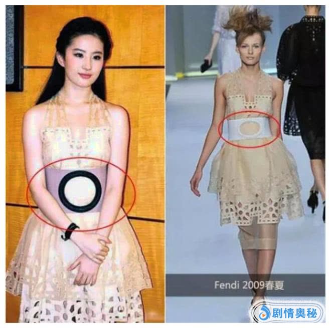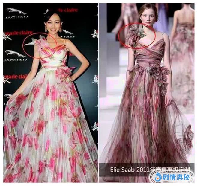 咱们的天仙姐姐刘亦菲,早期的时候就吃过很多次山寨礼服的亏,她好几次都被网友扒出来礼服是山寨货,是人家品牌高定的高仿货。