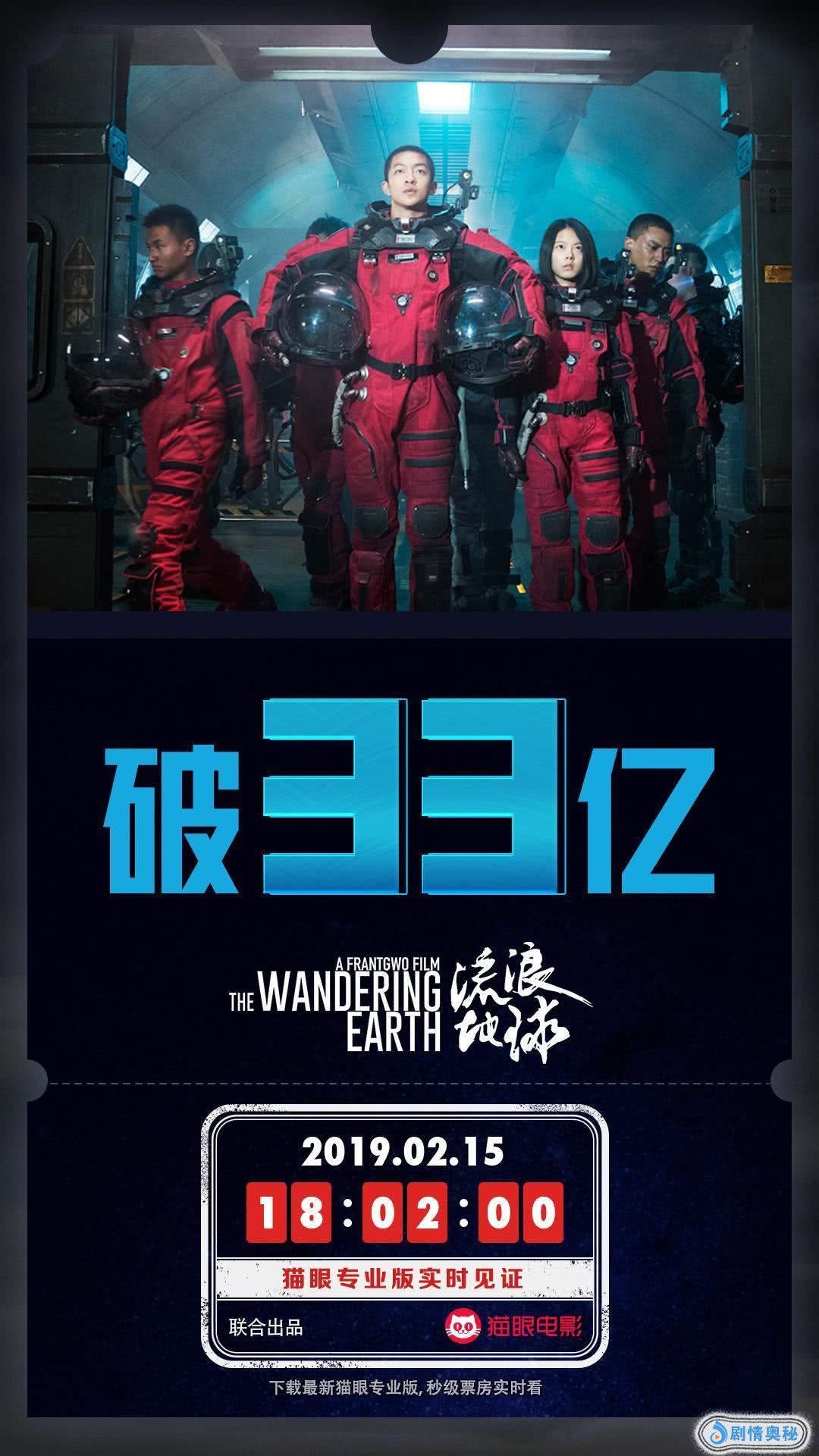 春节档过后,《流浪地球》的票房依旧火热,根据猫眼专业版数据,截止2月15日18点02分,《流浪地球》的总票房已经冲破了33亿元的大关。